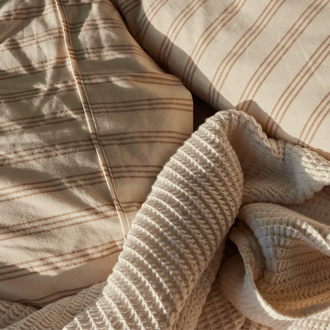 Our cotton is certified organic by the USDA and EU Organic standards. Our products meet the OEKO-TEX® Standard 100 and align with the Global Organic Textile Standard (GOTS), the highest benchmarks for ecological and social integrity.